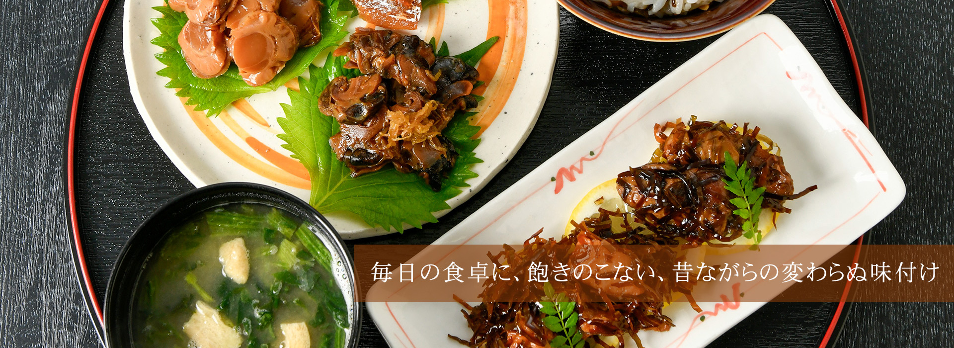 昔から食べられている「松前漬」、飽きずに食べられる「昆布惣菜」、おかずいらずの「炊き込みご飯」など、昔ながらの変わらぬ味付け、ご飯に合う惣菜をひとつひとつ手作りしております。 |